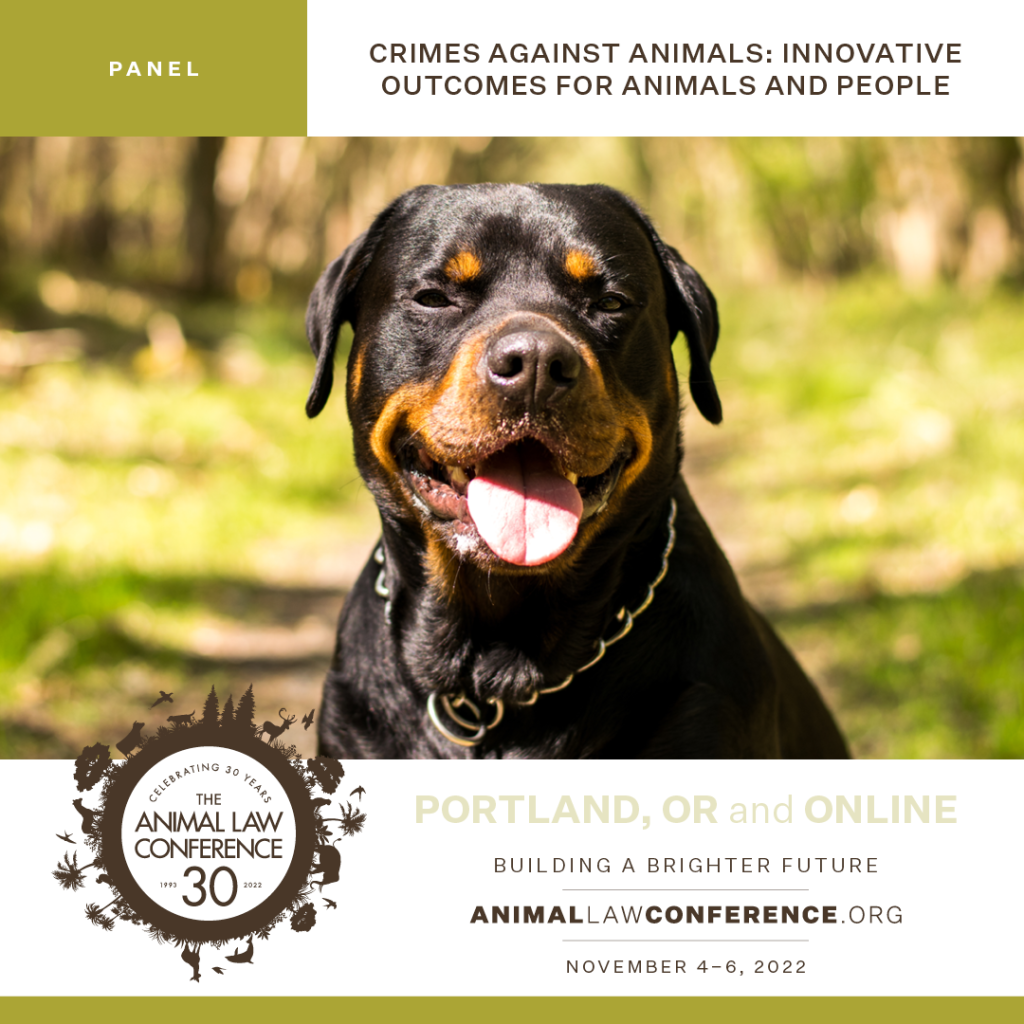 The animal law movement has for the most part been successful in showing people animal cruelty is a problem—the new challenge is to figure out the best path forward. A dynamic and evolving area of focus is creating targeted criminal justice outcomes to better help animal victims, prevent future crimes against animals, and build healthier and more resilient communities. This panel will look to the future with innovative work that is currently being done, including restorative justice, transformative justice, and mental health evaluations, through the lens of interspecies justice and One Health. A focus on outcomes leads back to prevention and resilience, bringing us full circle in effectuating positive change for animals in the criminal justice space.