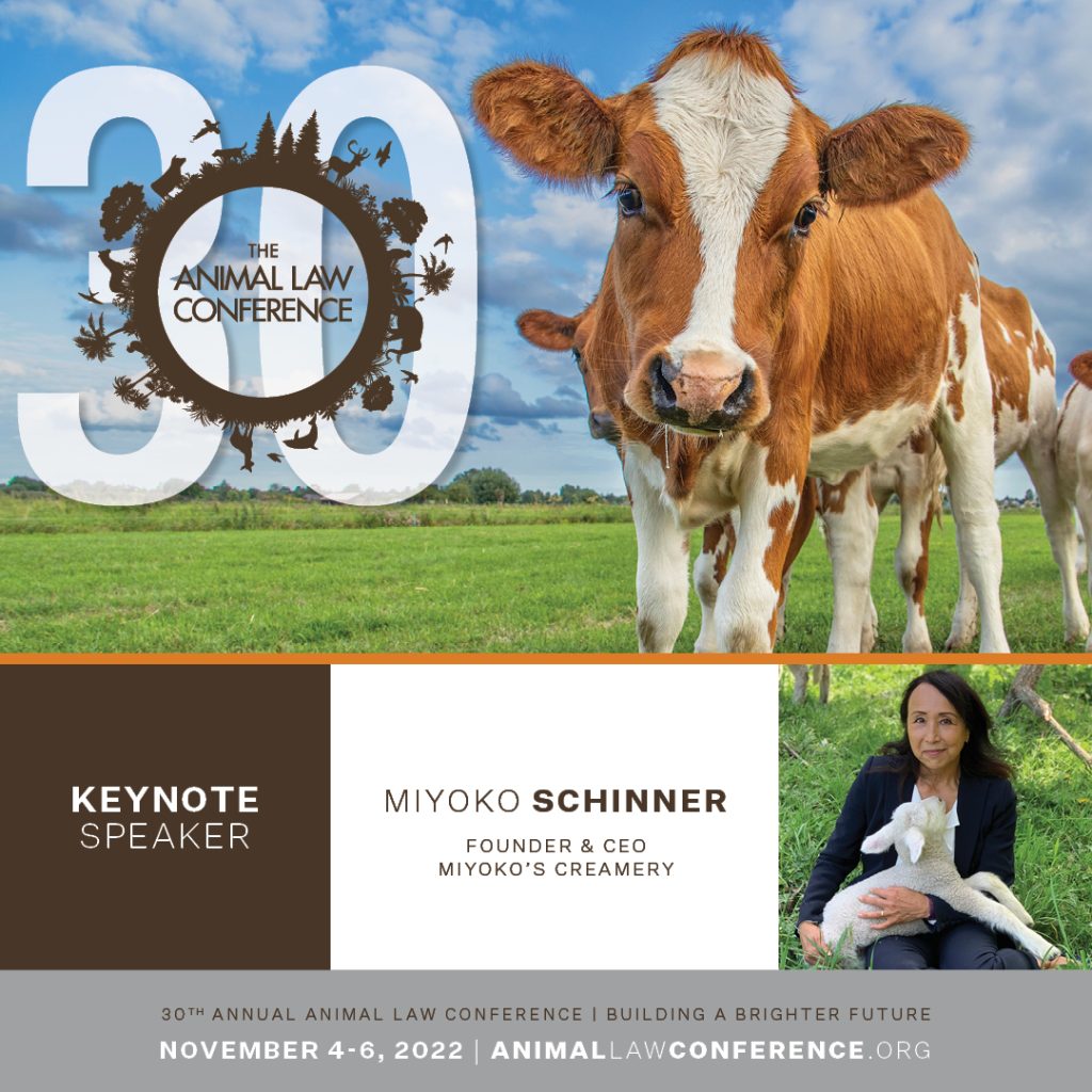 The day concluded with the banquet dinner, awards ceremony, and keynote presentation by Miyoko Schinner, Founder and CEO of Miyoko’s Creamery. The evening also featured the Animal Legal Defense Fund Pro Bono Achievement Awards, and for the first time, the Animal Law Conference Champion for Animals Award, presented to Sarah Luick in recognition of her outstanding contributions to the field.
